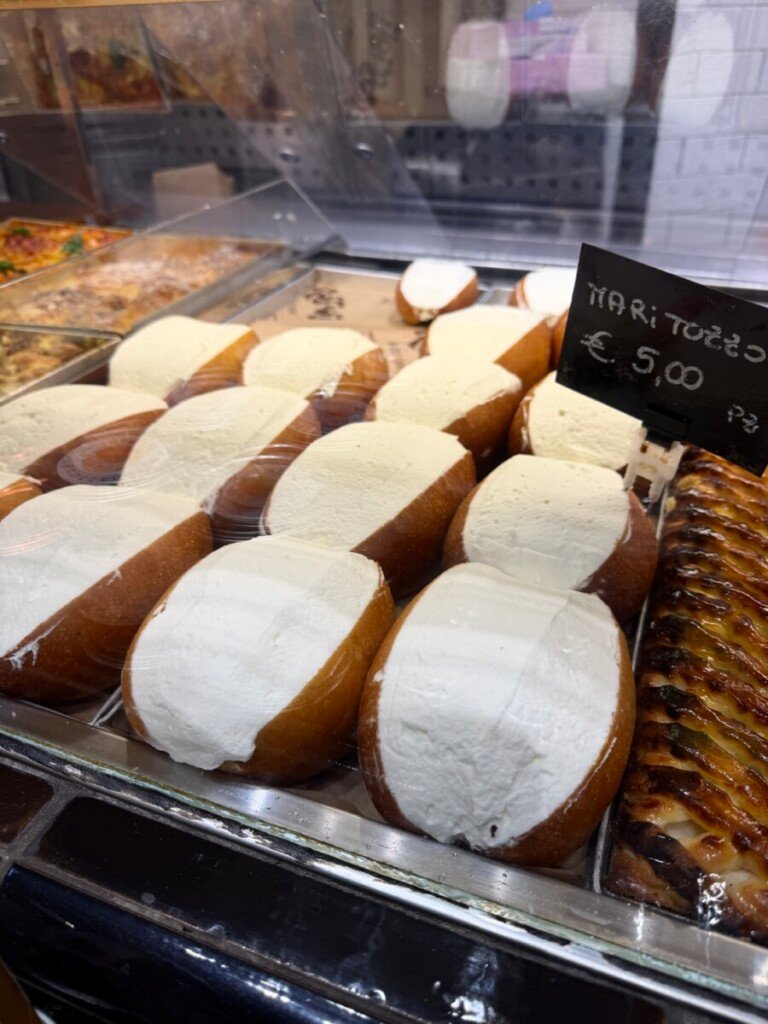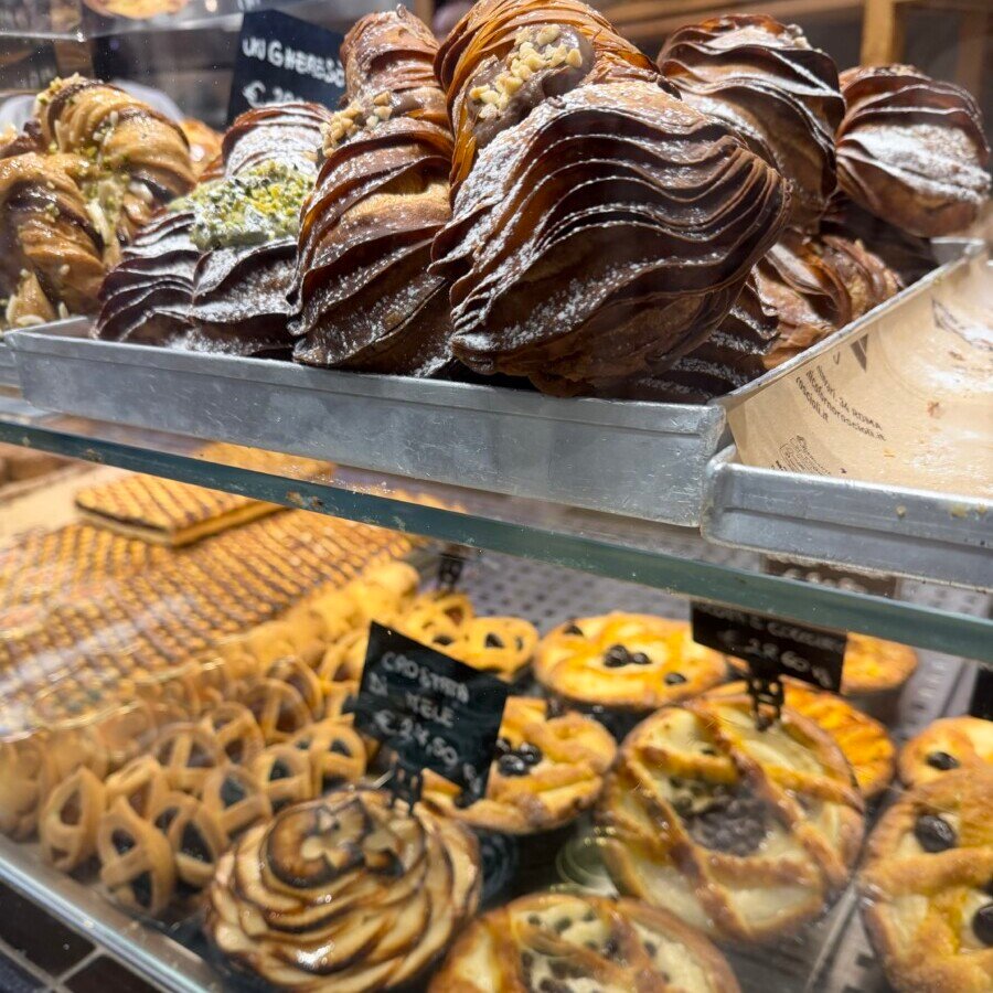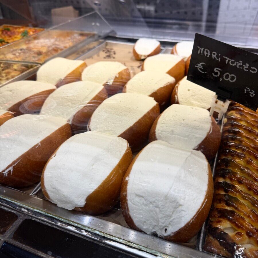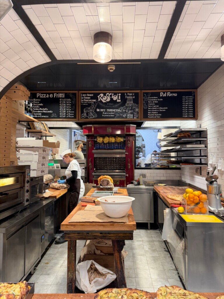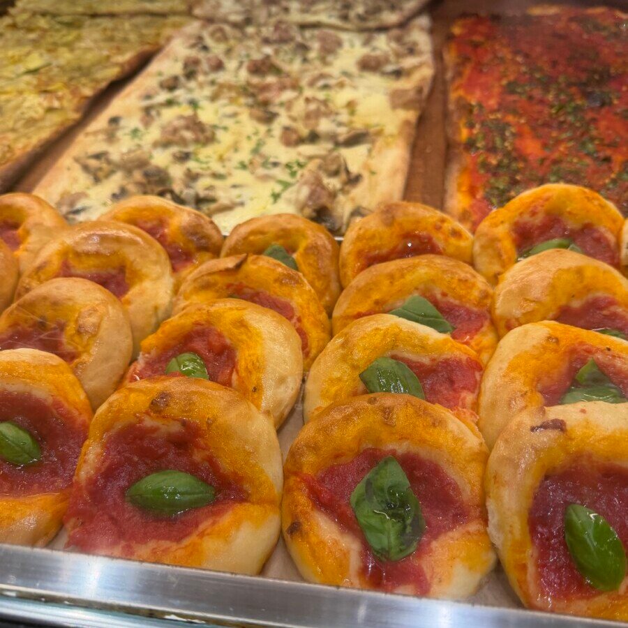 The offering remains broad and deeply Roman. Shelves are lined with breads, focacce, pastries, biscuits, and savoury staples, alongside supplì and small baked snacks meant for quick stops rather than lingering meals. A quintessential highlight is the pizza al taglio and pizza bianca, thin and crisp, sold by weight and topped simply — from olive oil and tomato to potato, mozzarella, and seasonal vegetables. It is everyday Rome at its best: informal, dependable, and rooted in centuries of practice rather than presentation.