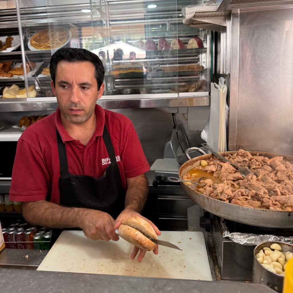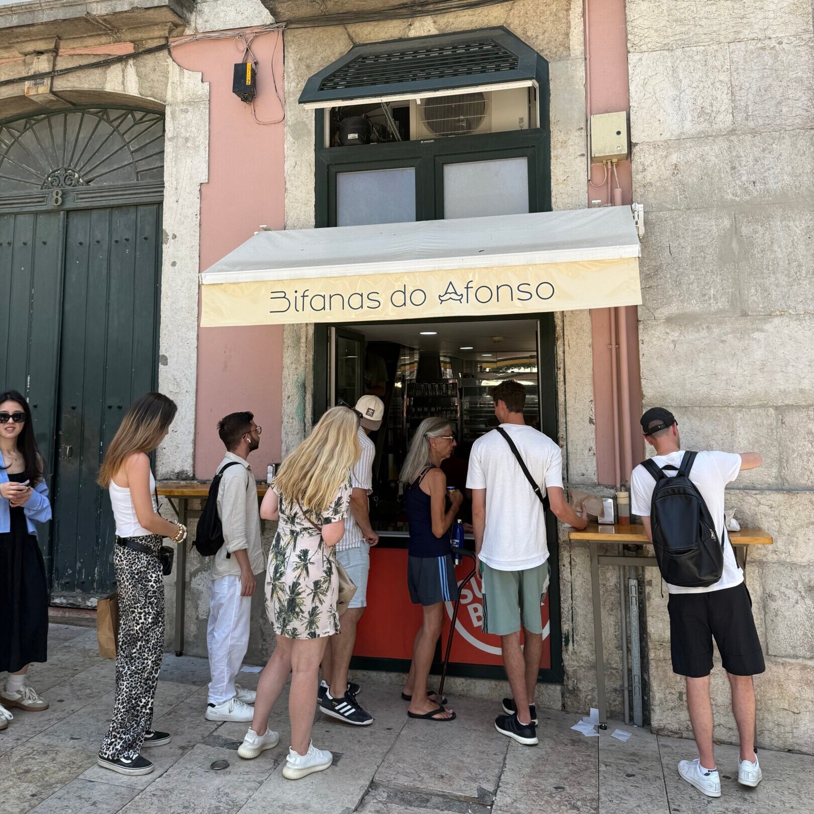 On Rua da Madalena 146, As Bifanas do Afonso is one of Lisbon’s great takeaway institutions, known for its slow-braised pork bifana. Thin slices of pork are simmered in white wine, garlic, bay leaf and lard until tender, then served in a warm, crisp roll — simple, deeply comforting and unmistakably Lisbon.