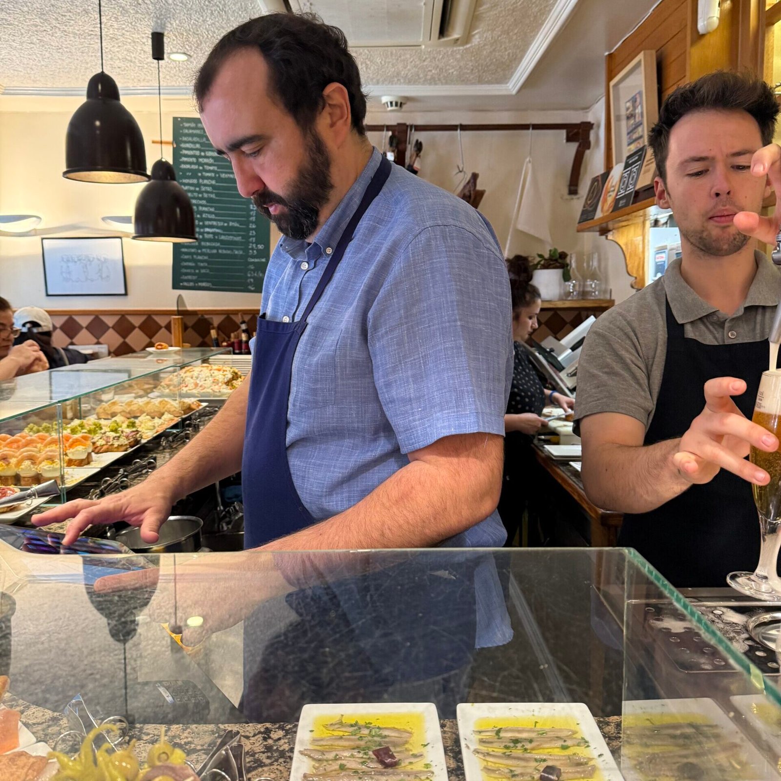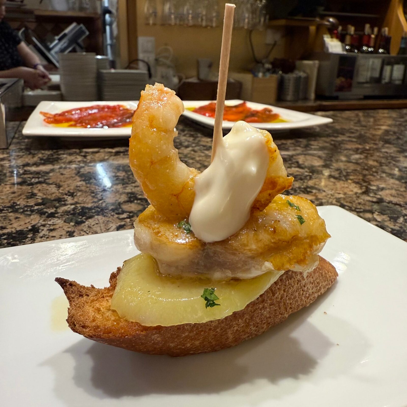 If there is one bar one shouldn’t miss when pintxos crawling in San Sebastian, it’s definitely Bar Ganbara, an institution run by the Martínez Ortuzar family since 1984. Its success might be due to the quality and excellence that have been consistent for years. It is a favourite of the legendary chef Juan Mari Arzak, and Anthony Bourdain has been here as well. As it gets really busy, make sure to start queuing half an hour before opening to get a seat at the counter or at one of the two tall tables by the entrance.
