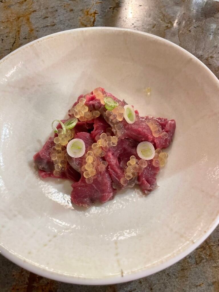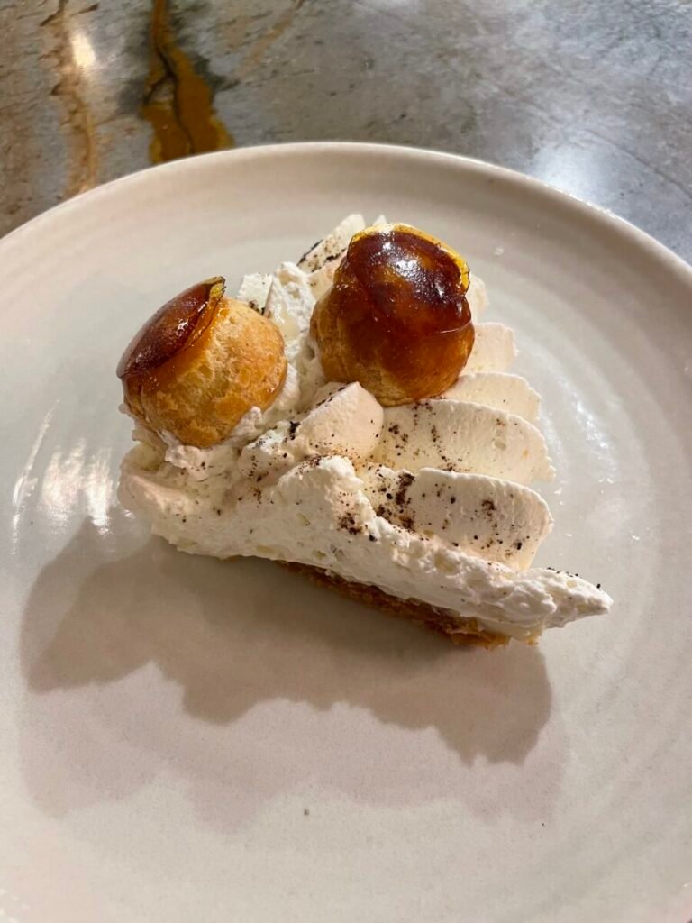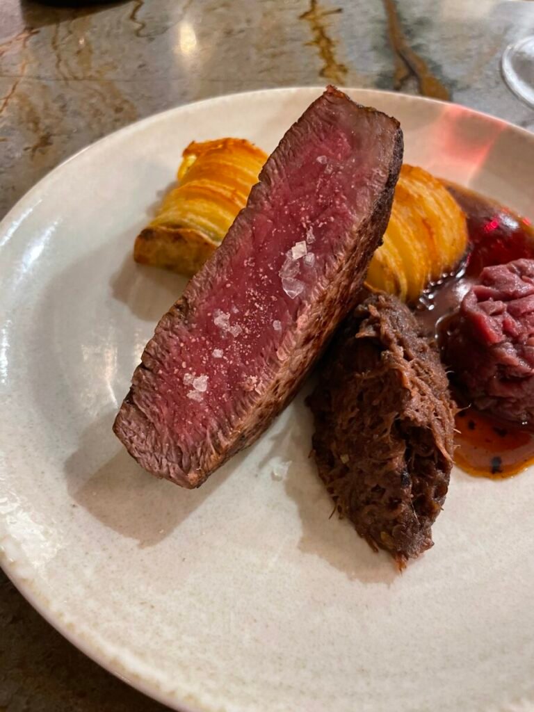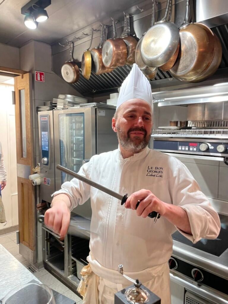 Tucked behind the lively Le Bon Georges bistro, “Le Salon” is an intimate chef’s table where Loïc Lobet cooks for just a handful of guests. Here, the experience is entirely distinct from the main restaurant: two different rooms, two different menus. While the bistro serves Parisian bistro classics the chef’s table has no written menu—only the finest ingredients of the day, interpreted on the spot according to the chef’s inspiration. The atmosphere is convivial yet discreet, as if dining in a friend’s kitchen, with dishes that reflect both precision and generosity. From wild fish to carefully sourced French meats and vegetables, everything is treated with respect and a light touch. It feels like a well-kept secret in Paris, and one of the most rewarding discoveries I’ve made over the recent years.
