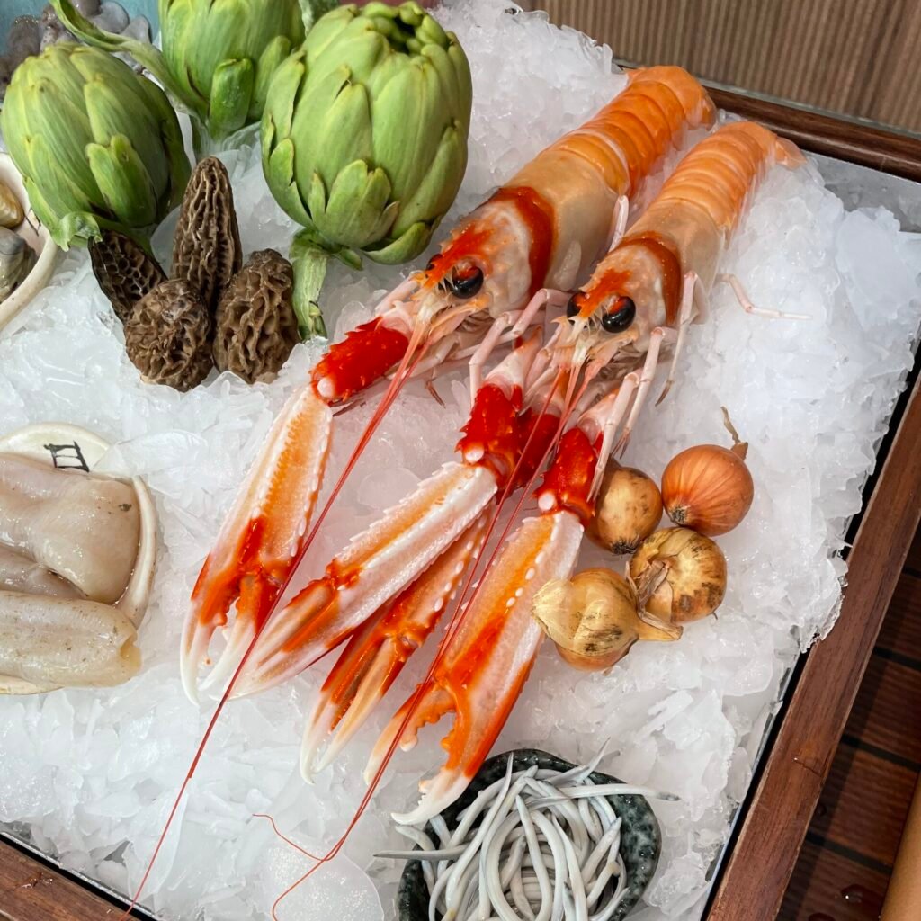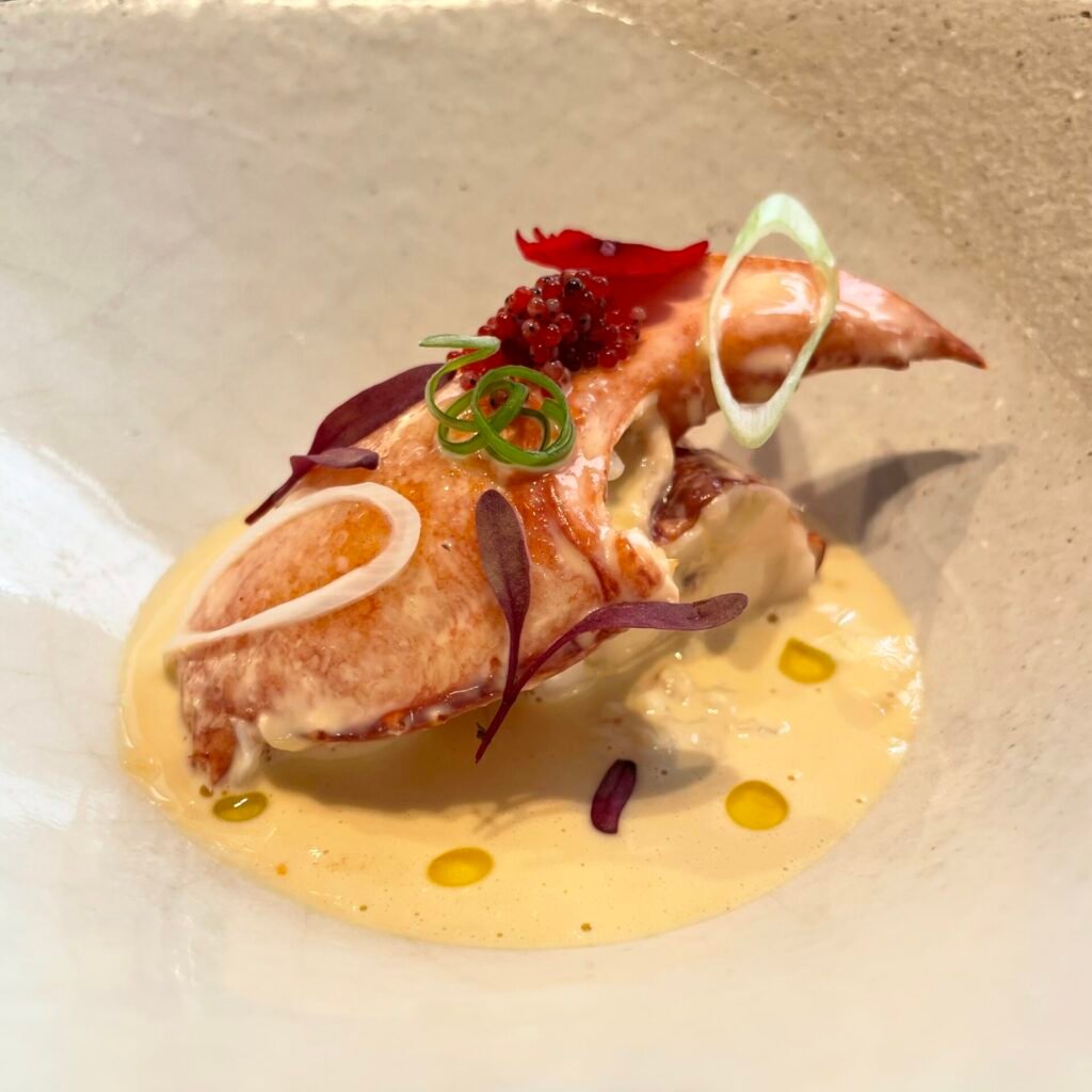 Today, the restaurant reflects that legacy with a daily-changing menu shaped entirely by the finest catch arriving from Spain’s coasts — often less than twenty-four hours after being landed. Nordic in spirit, the space is arranged around three areas: a bright dining room facing the open kitchen, a central garden patio for aperitifs and sobremesa, and an intimate private room.