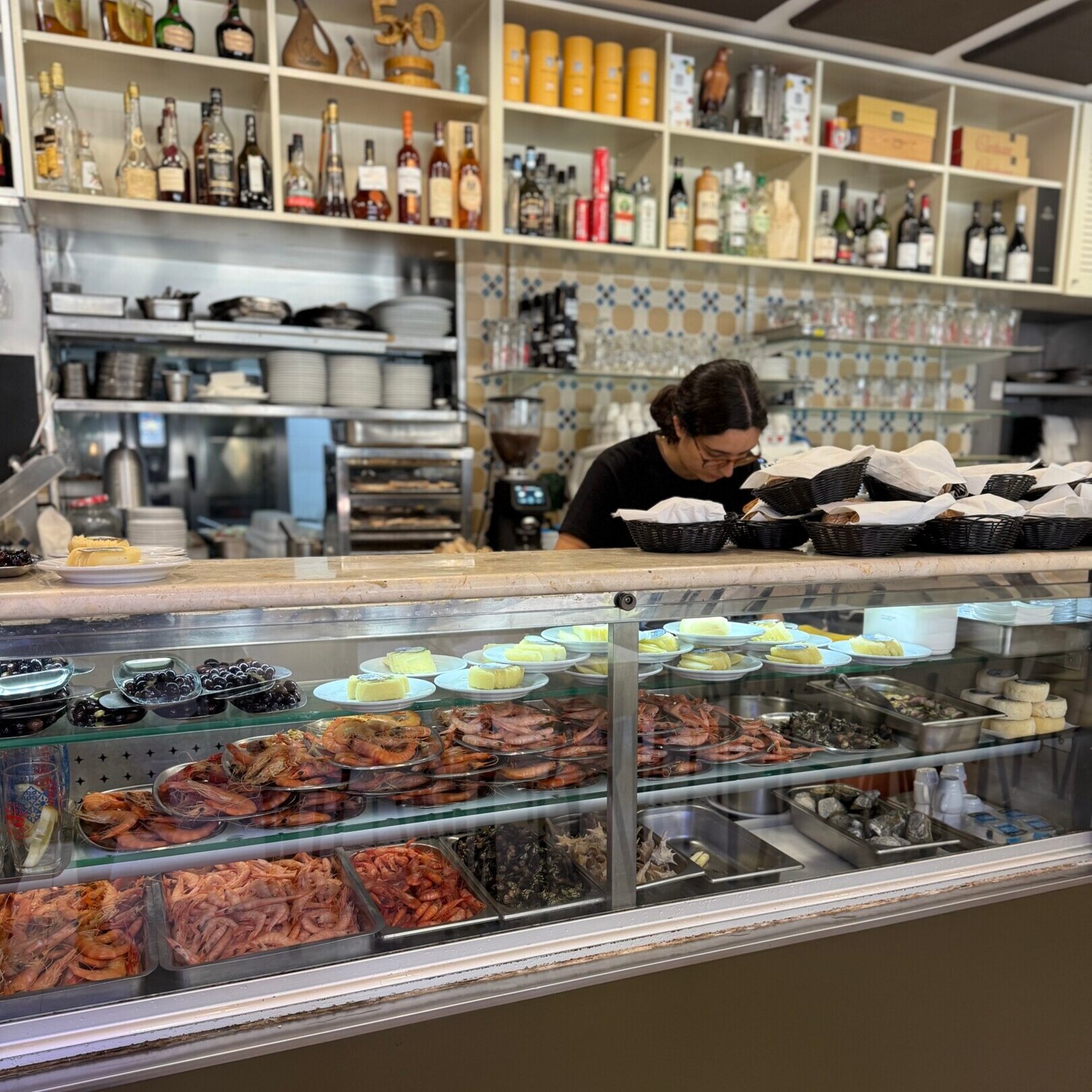 The menu centres on the essentials — conquilhas, amêijoas, mexilhões, ostras, gambas, sapateira recheada, lagosta and lavagante — prepared simply and well, relying on years of practice rather than embellishment. Hearty staples such as arroz de tamboril, açorda and bacalhau estalado complete the offering.