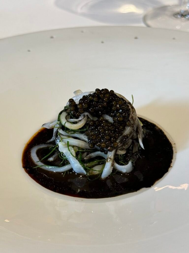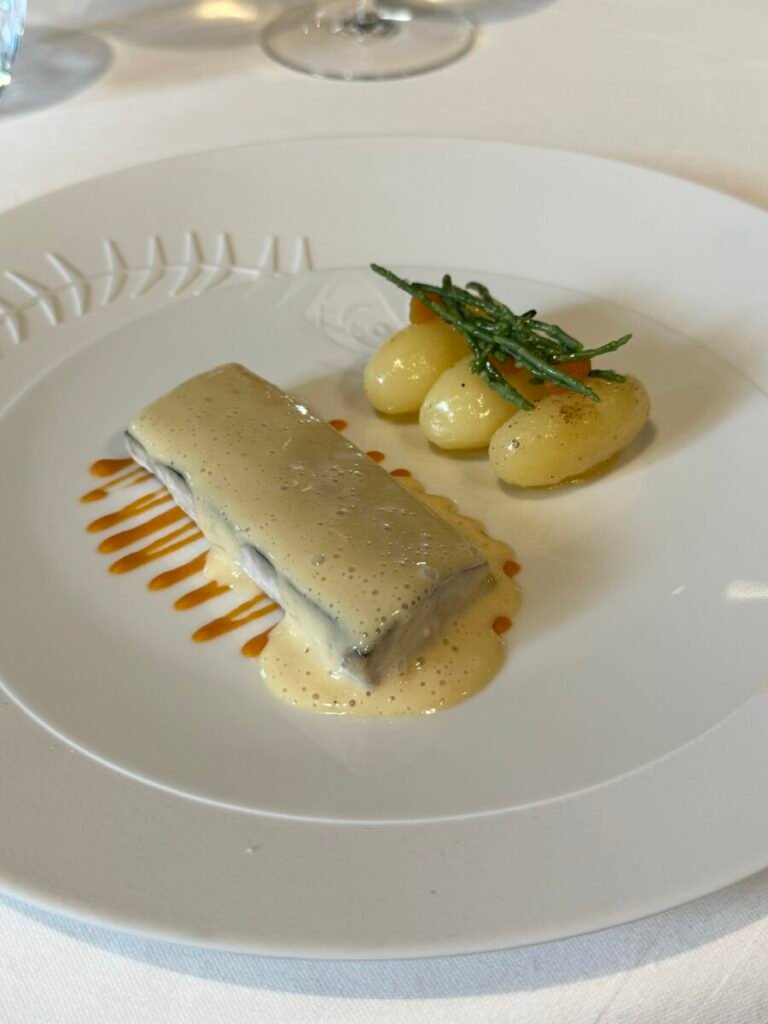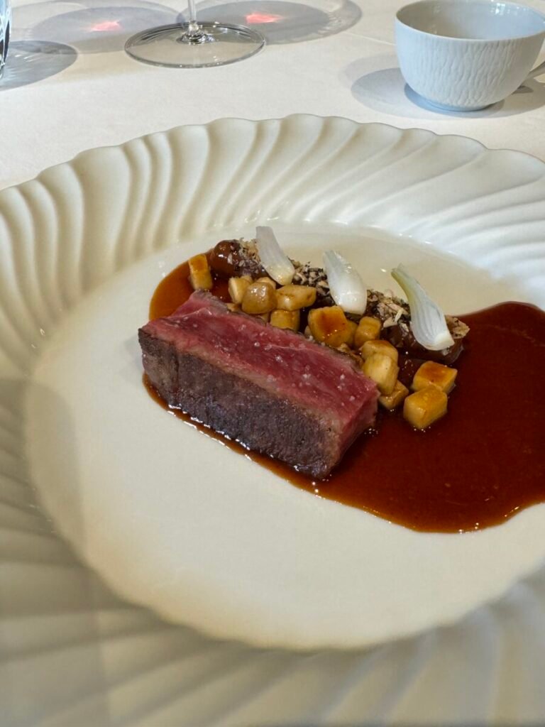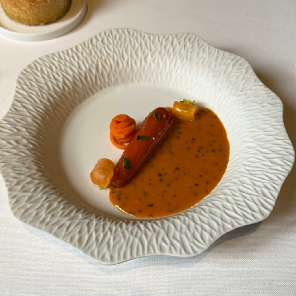 Le Gabriel, the three-Michelin-starred restaurant at La Réserve Paris, is led by chef Jérôme Banctel. Originally from Brittany, he draws inspiration from the seas and terroir of his native region, as well as from a career shaped in some of the most illustrious Parisian kitchens, including L’Ambroisie, Alain Ducasse, and Lucas Carton under Alain SenderensWith this background, he has developed a style that combines respect for ingredients, classic French cooking tradition, and impeccable technique. One of the most striking dishes was a humble carrot, candied almost like a confection and paired with a vivid ginger sauce—an elegant reminder of how simple produce can become transcendent in the right hands.