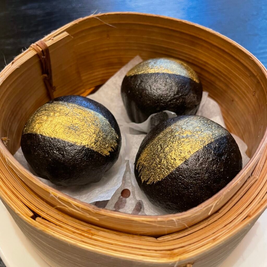 - Steamed Signature Charcoal Bun with Custard