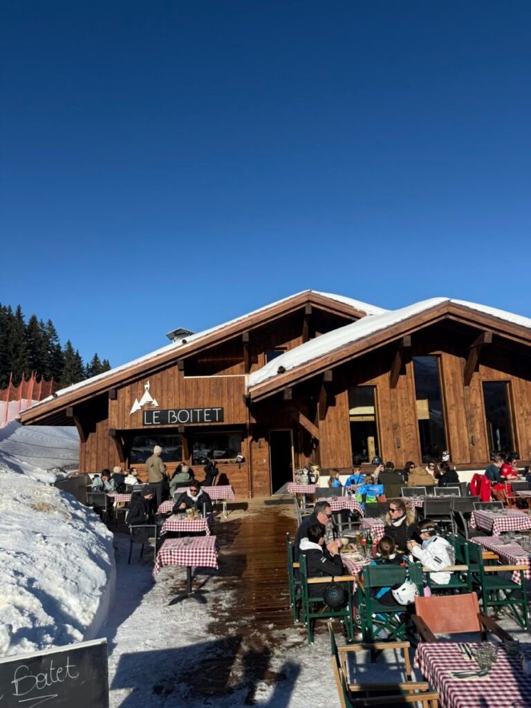 Le Boitet is a mountain restaurant located near the slalom stadium of Saint-Gervais, just 200 metres from the Bettex cable car terminus, on the slopes of the Évasion Mont-Blanc ski area. A cosy spot well known to ski instructors, it offers breathtaking views of Mont-Blanc and the Fiz mountain range.