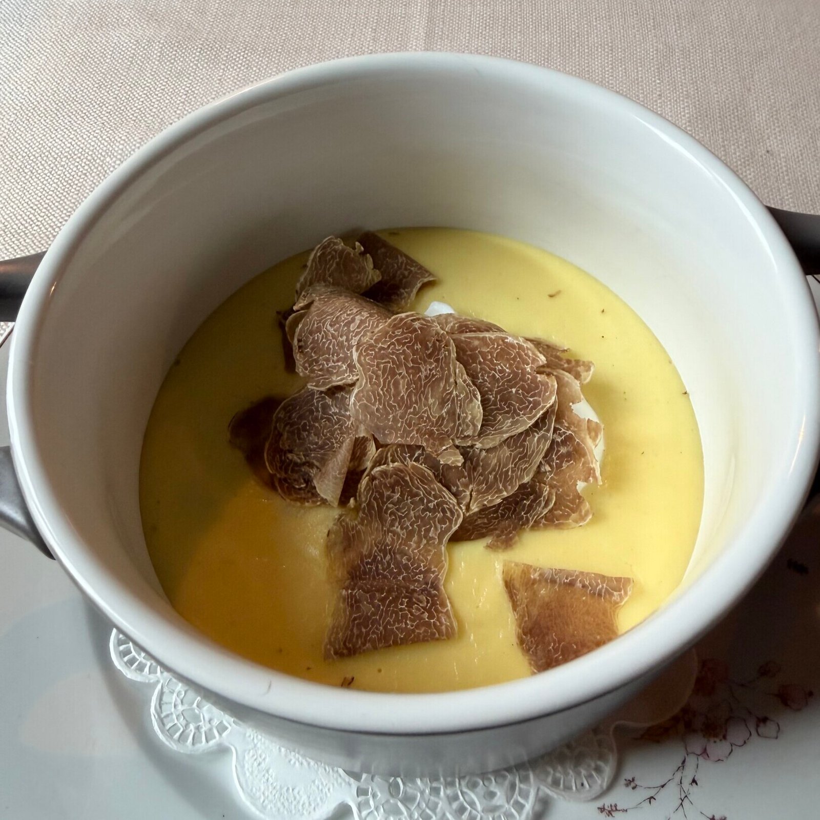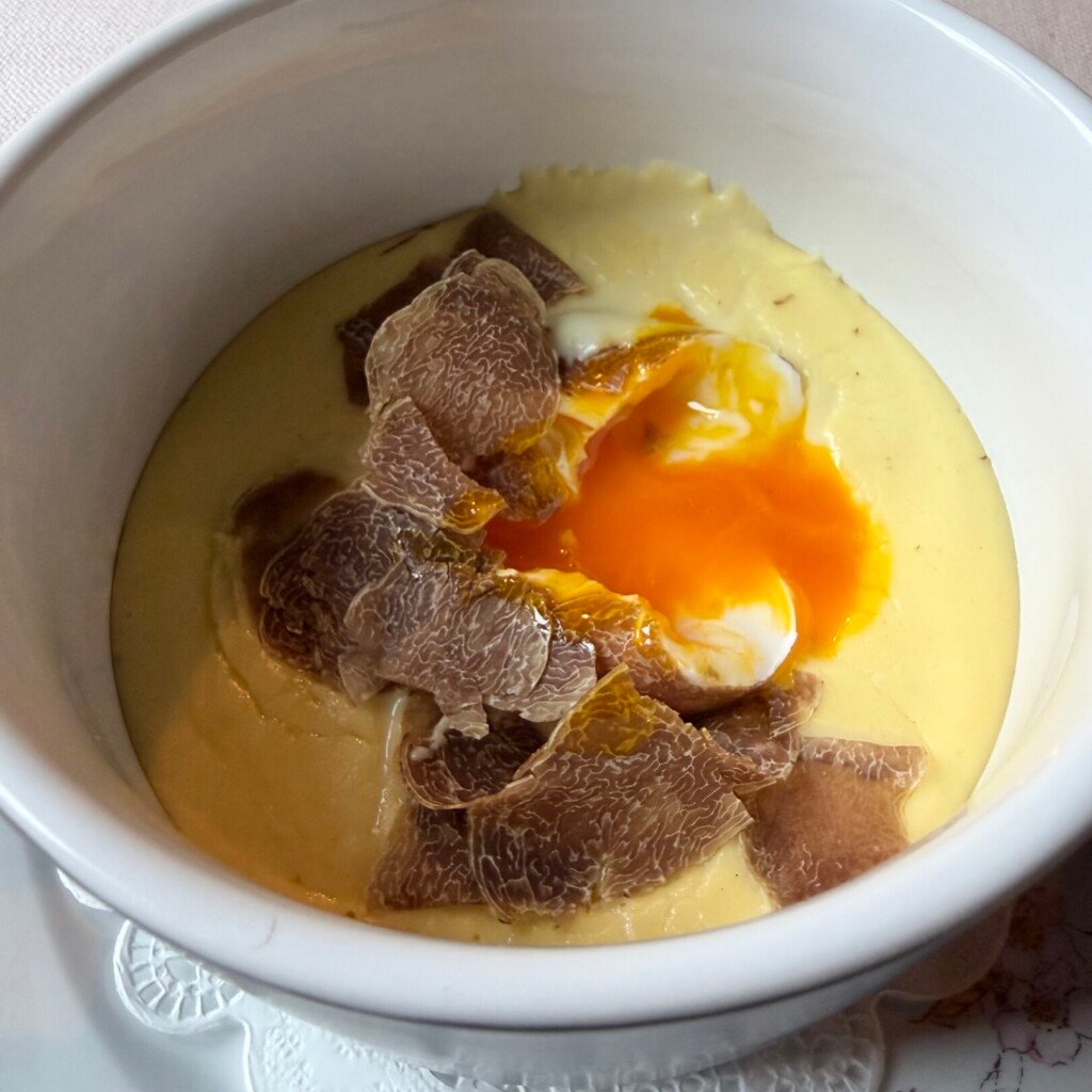 - Poached egg served with cheese sauce from Alta Langa (perfect with Alba truffle)