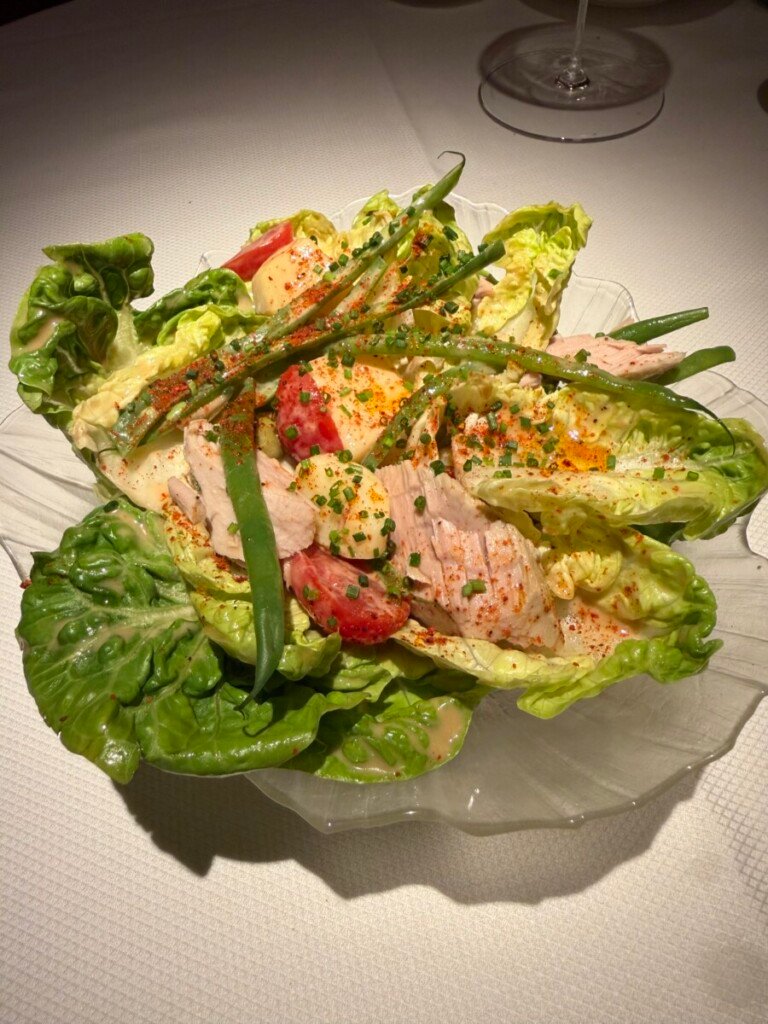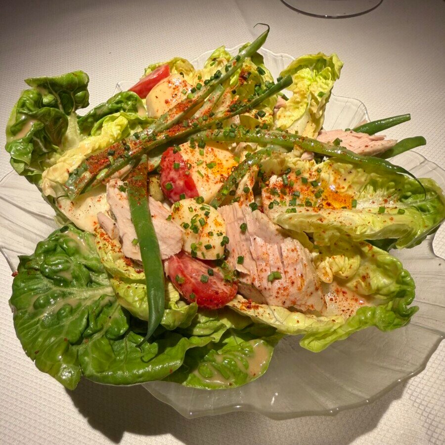 - Niçoise salad, crispy vegetables, olives, tuna confit