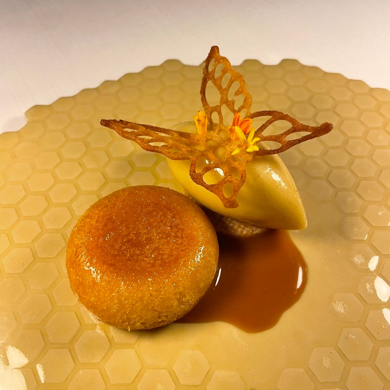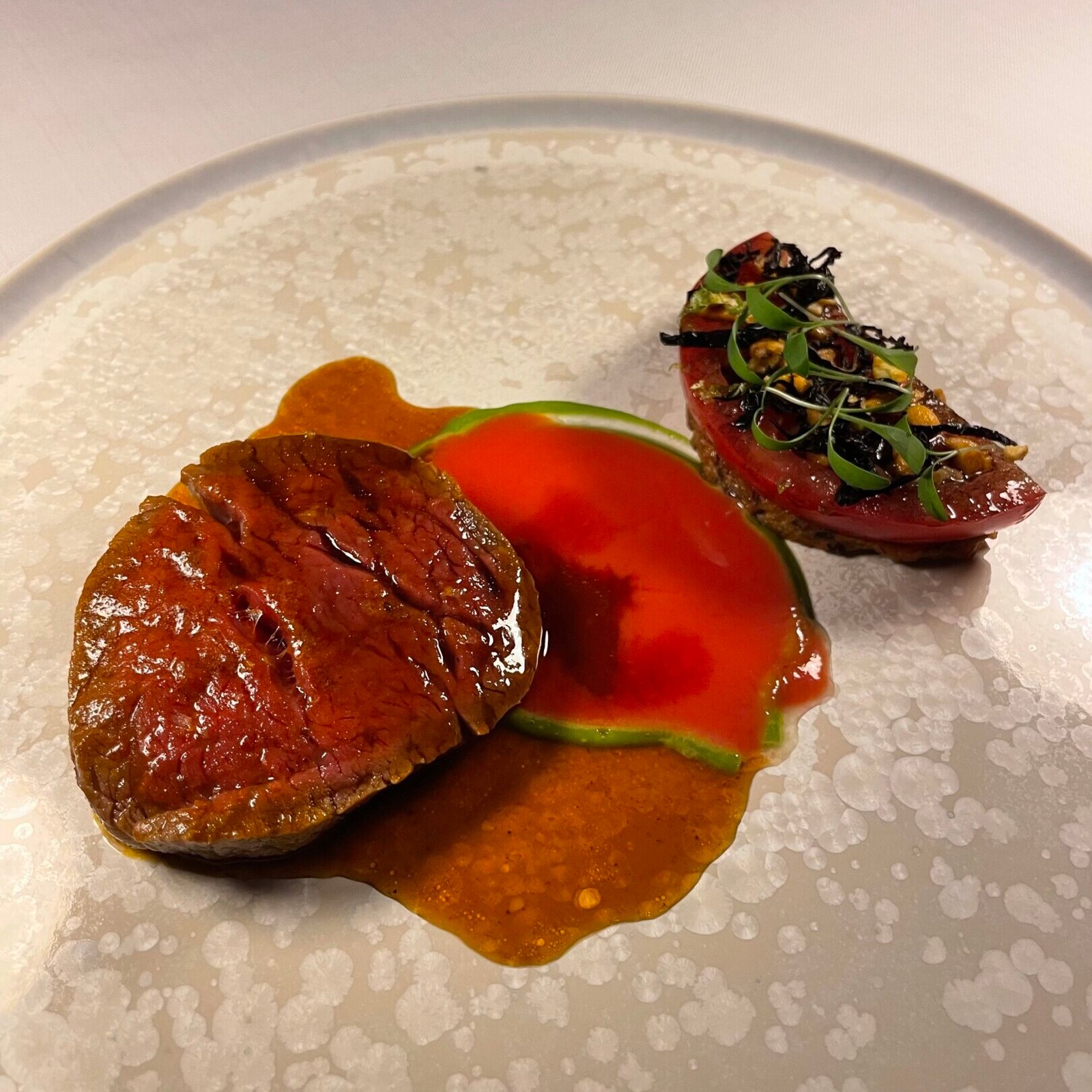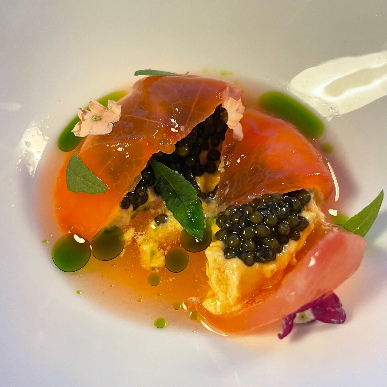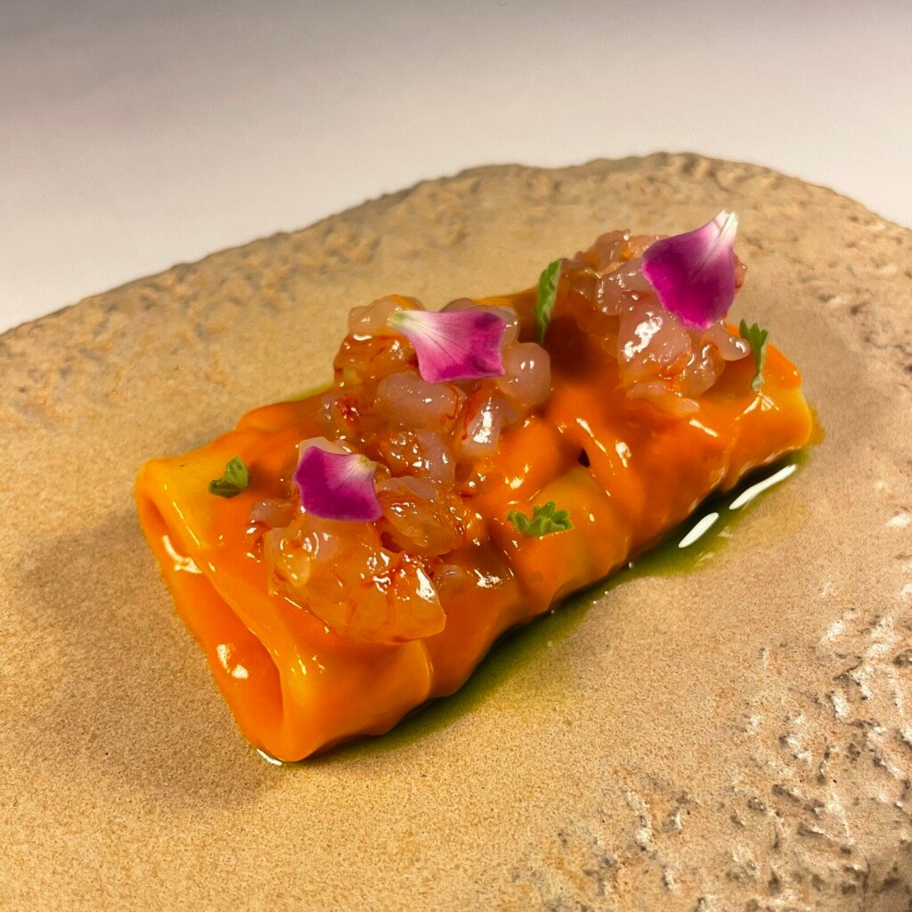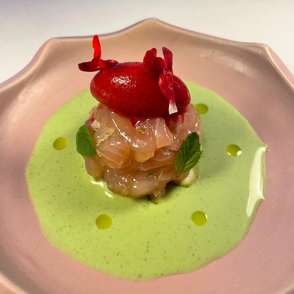 Under the direction of Chef Luca Piscazzi, the cuisine combines his Italian heritage with Greek ingredients. His background is reflected in the precision and restraint of the dishes, while the products are sourced from across Greece, including regional cheeses and island seafood. The menu presents a contemporary interpretation of fine dining rooted in local sourcing. Combinations may include sun dried tomato with Oscietra caviar or yellowtail paired with mint and pistachio, expressing a balance between Mediterranean clarity and Greek terroir.