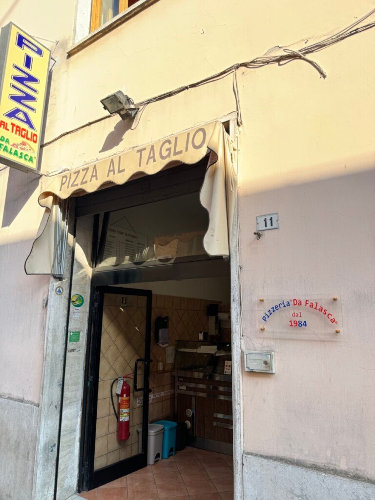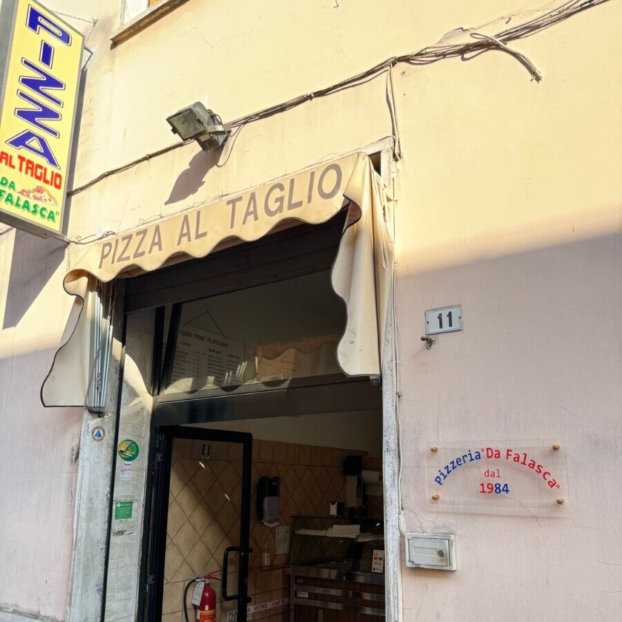 Pizzeria da Falasca is a tiny, family run pizzeria specialising in pizza al taglio, the Roman tradition of rectangular, tray baked pizza sold by the slice. The dough is light and crisp, toppings are seasonal and well balanced, and the selection changes throughout the day.