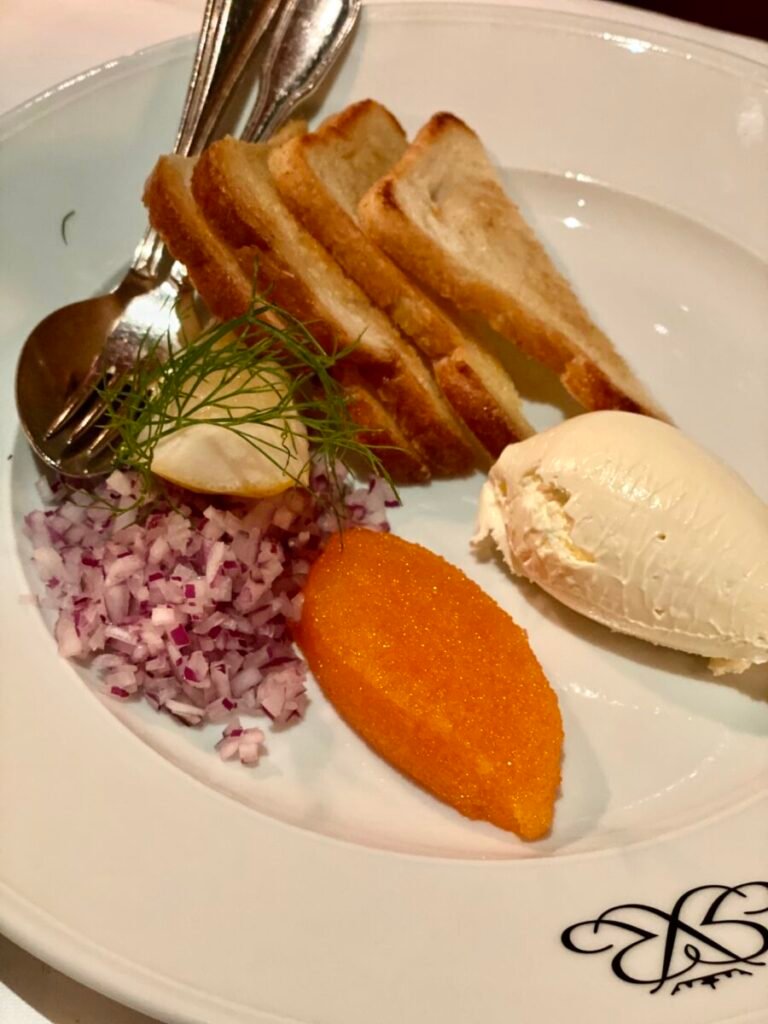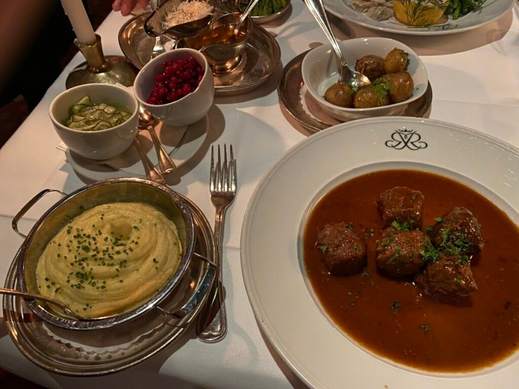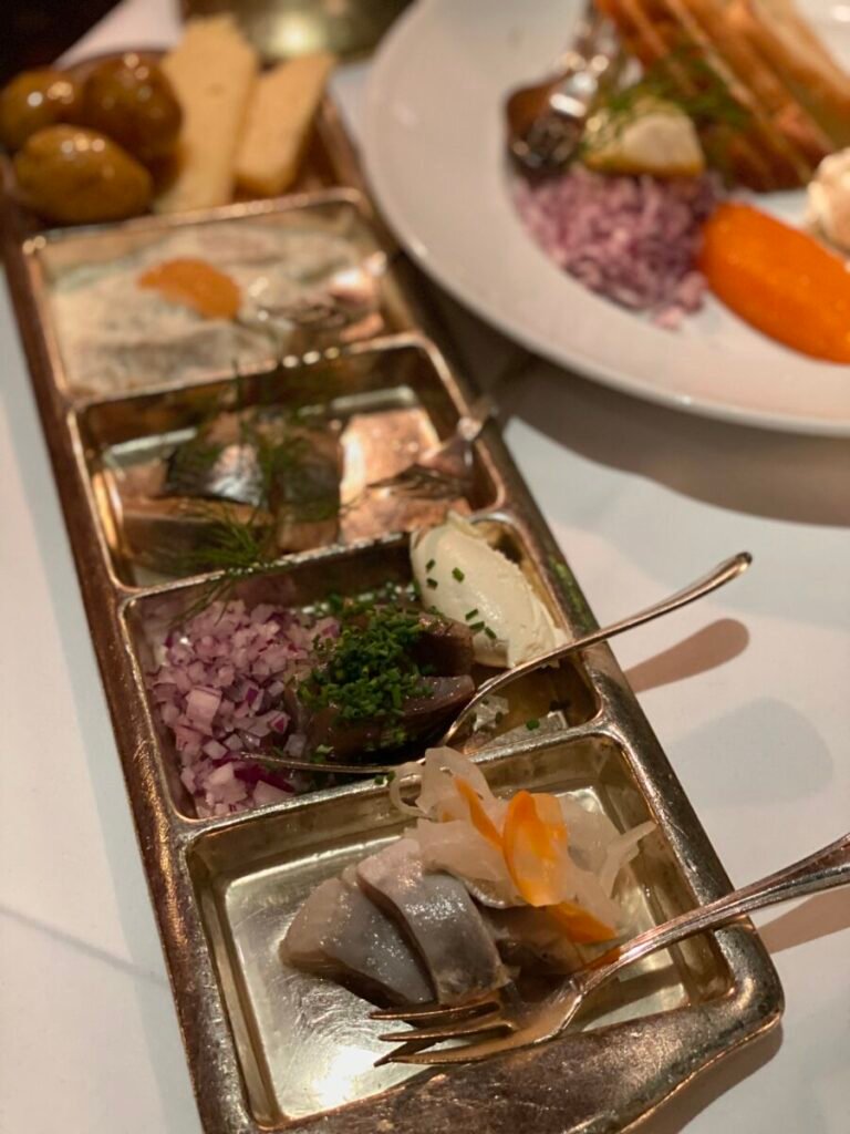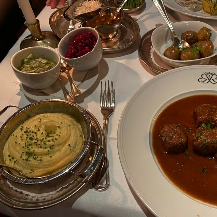 Opened in 1945 by Tore Wretman as the sister restaurant to Riche, Teatergrillen remains one of Stockholm’s most classic dining rooms. The cooking centres on top-quality ingredients—turbot, salt-baked Swedish entrecôte, löjrom—prepared in a refined Hausmann style with French influences. Much of the experience happens tableside, from fish being boned to fruit flambéed, a reminder of traditional dining-room craftsmanship.