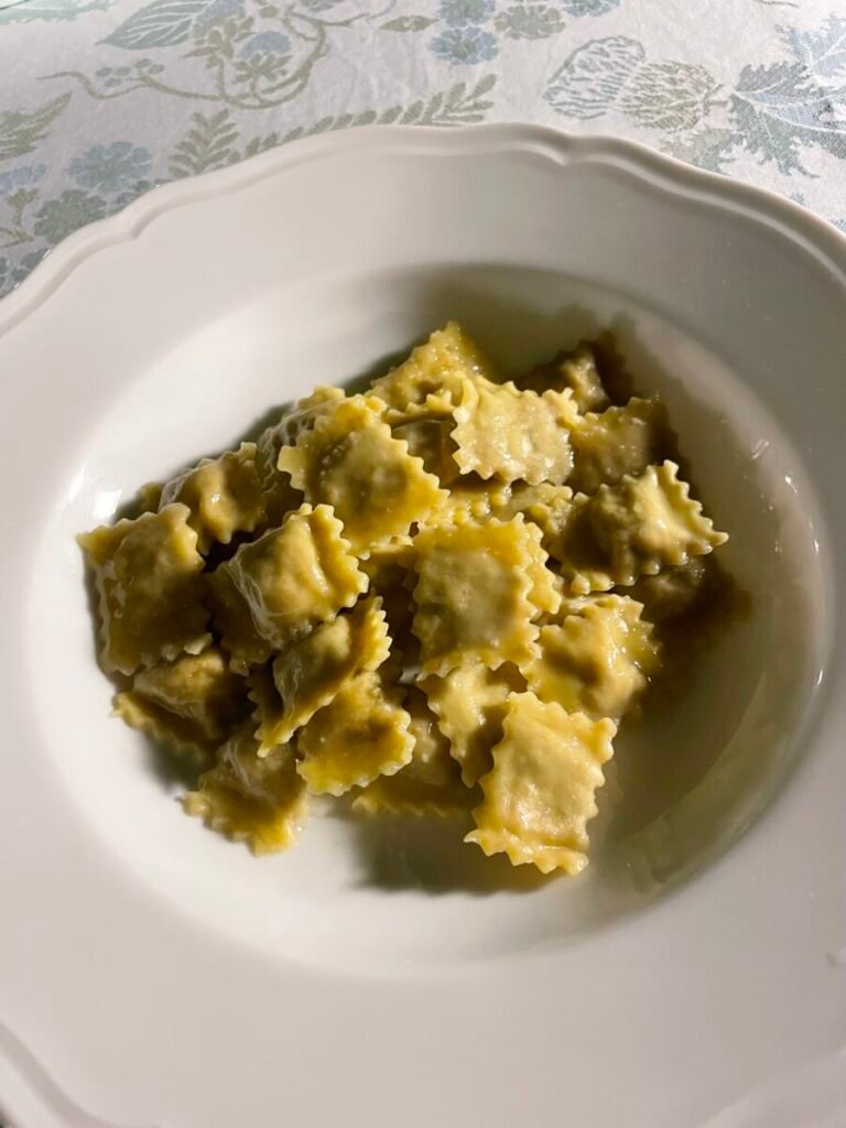 - Meat ravioli with butter and sage.