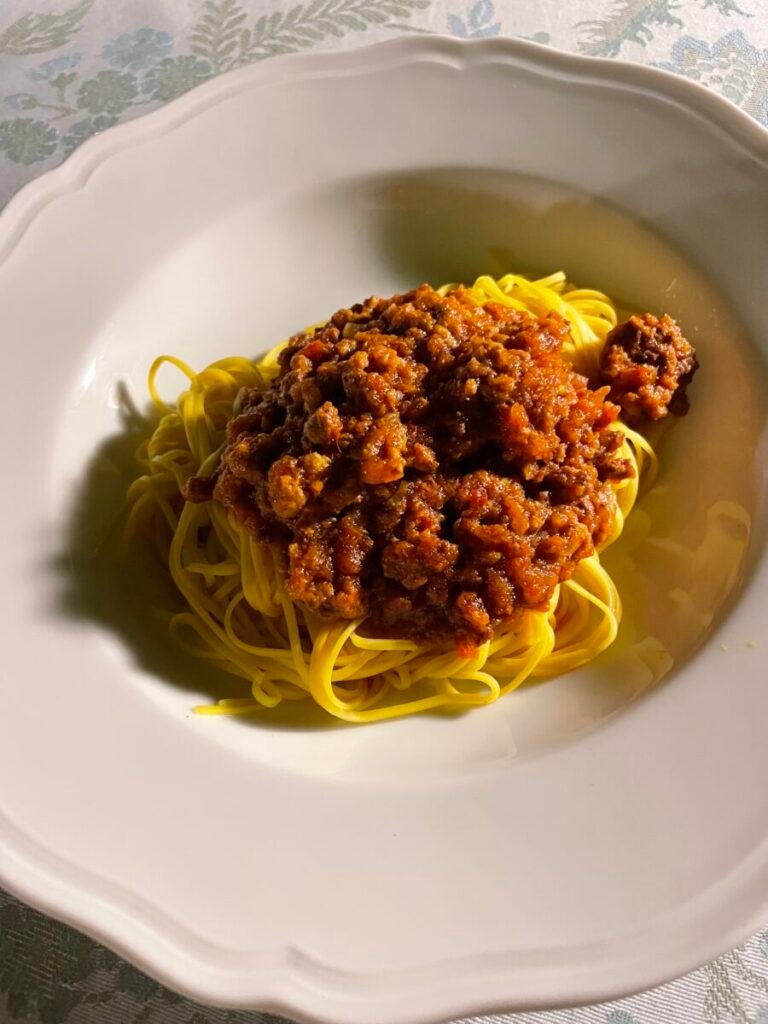- Egg tagliolini with meat ragú.