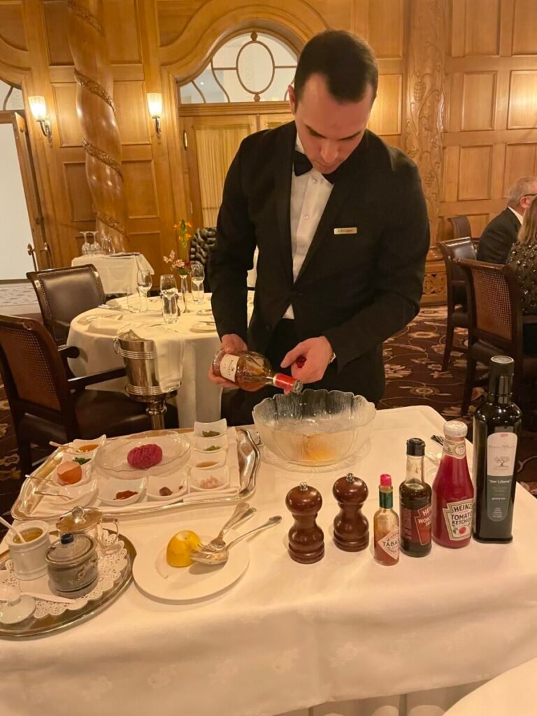At the Grand Restaurant of Suvretta House in St. Moritz, history and gastronomy meet under coffered ceilings, oak pillars, and soft, elegant lighting. Executive Chef Fabrizio Zanetti presents a refined market-fresh French cuisine with international accents, recognised with 17 GaultMillau points. Classic tableside service adds to the sense of timelessness, whether choosing the daily four-course menu or dining à la carte.