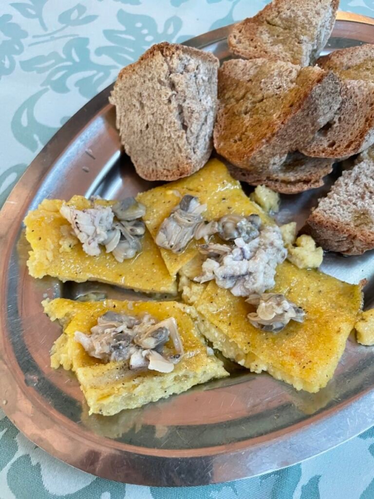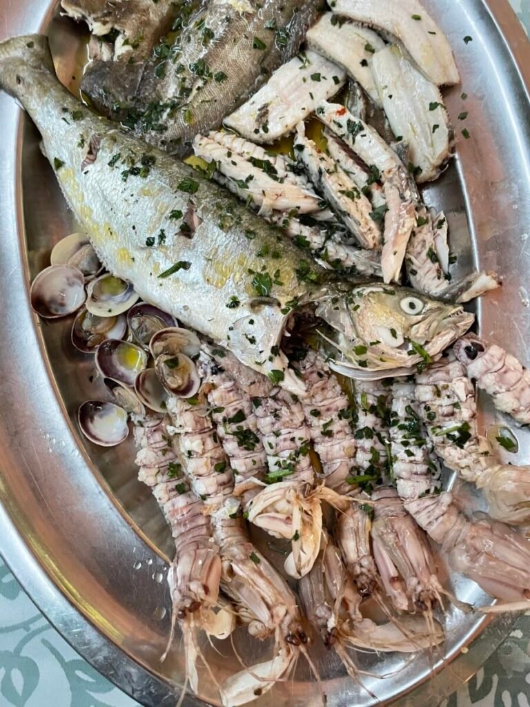 The menu shifts daily depending on the catch: a traditional brodetto fish stew, polenta with clams, or the exquisite platters of steamed fish and crustaceans that have become Maria’s signature. Rooted in recipes passed down from her aunt and prepared with minimal intervention, her cuisine reflects the purest expression of the Adriatic.