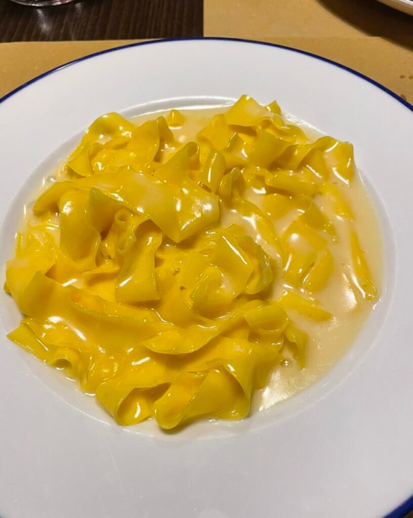 The menu evolves constantly, but one dish has entered legend: Rossi’s tagliatelle al burro e Parmigiano, a deceptively simple preparation that he turns into something divine.